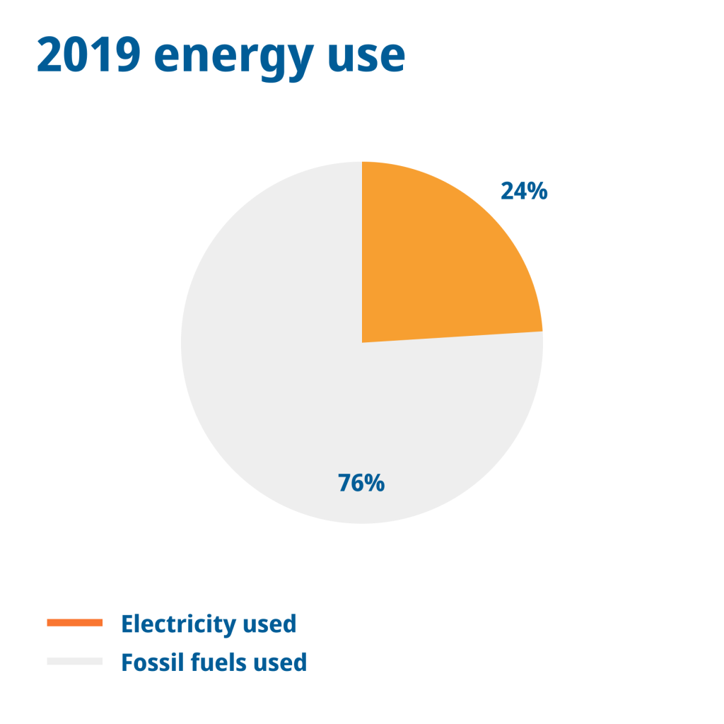 We track emissions caused by fossil fuels and electricity.